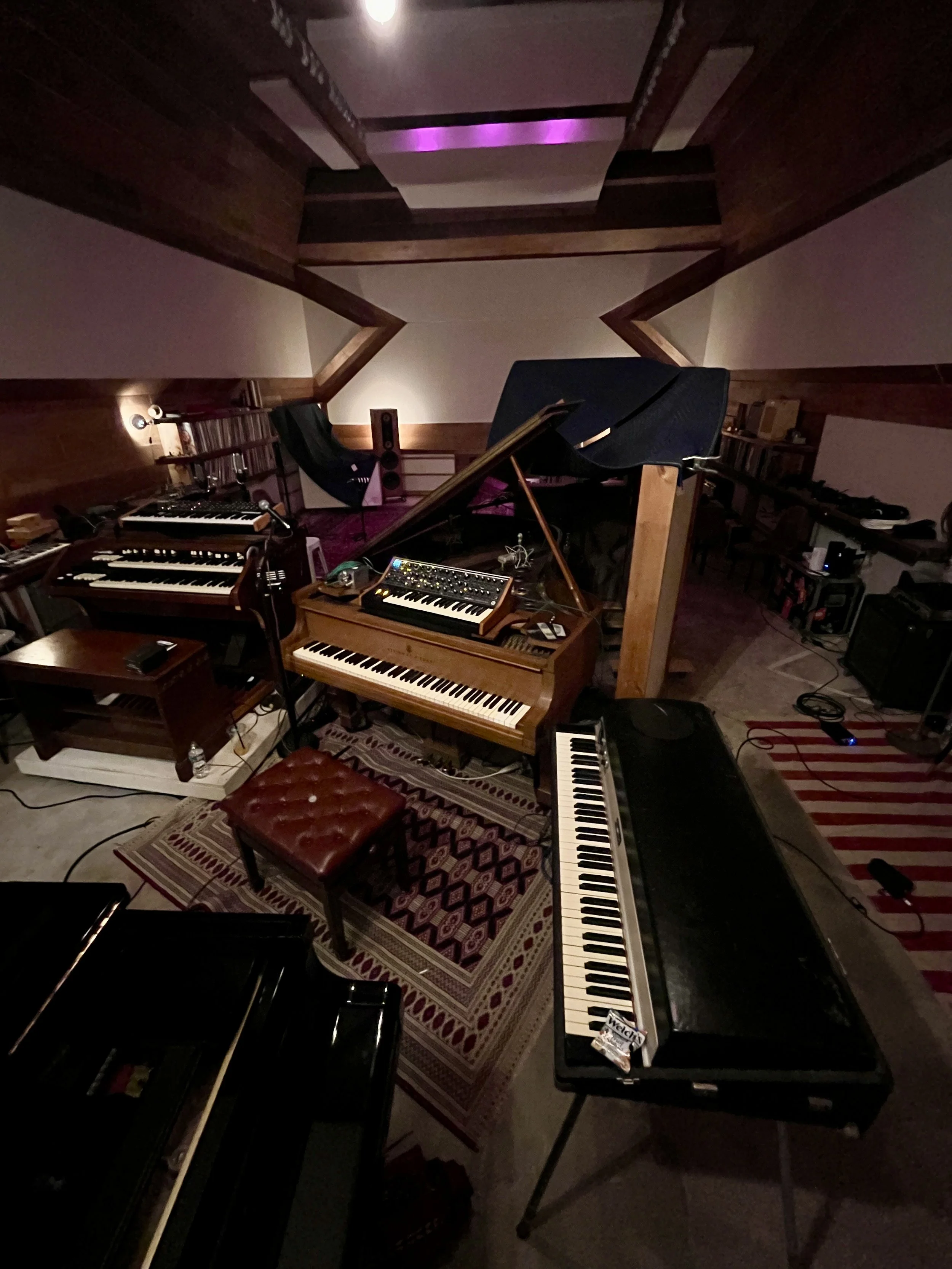The Bridge Studio was designed by Amon and custom-built from the ground up. In addition to the control room and “big room”, it has a B room for additional isolation and vocal booth.